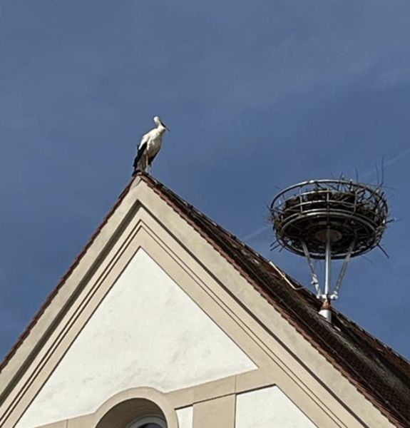 Am 12.04.2022 wurde das Storchennest aus Edelstahl am Rathausdach nach unseren Antrag aus dem Jahr 2021 montiert.